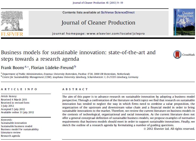 The Journal of Cleaner Production (JCP) currently offers open access to our article “Business Models for Sustainable Innovation: State of the Art and Steps towards a Research Agenda“. If you don’t have access to JCP, e.g. via your university, this might be an opportunity to get a copy for free. We are not sure how […]